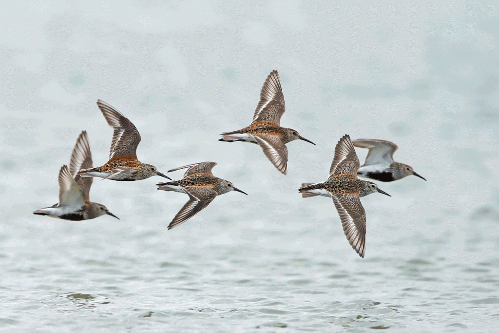Dunlins are commonly seen on our estuaries in winter and large flocks can look like a fastmoving grey cloud as they constantly change shape while the birds give a closeknit aerial performance.
