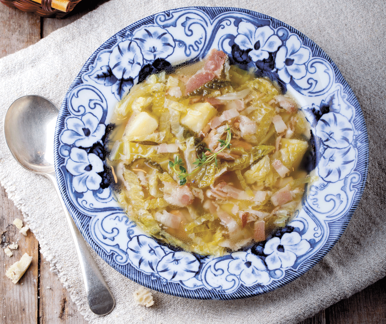 Savoy Cabbage, bacon, parsnip and chickpea soup – Serves 4