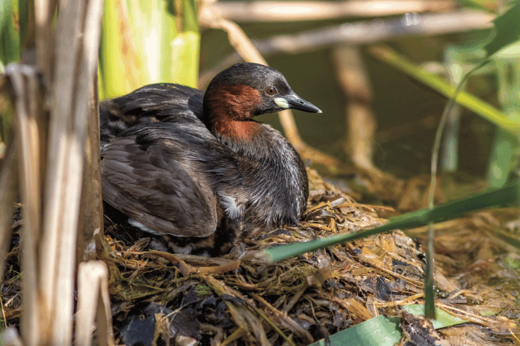 The Little Grebe is about the size of a Blackbird in length but has no tail. If you didn’t know better you could easily mistake it for a duckling.