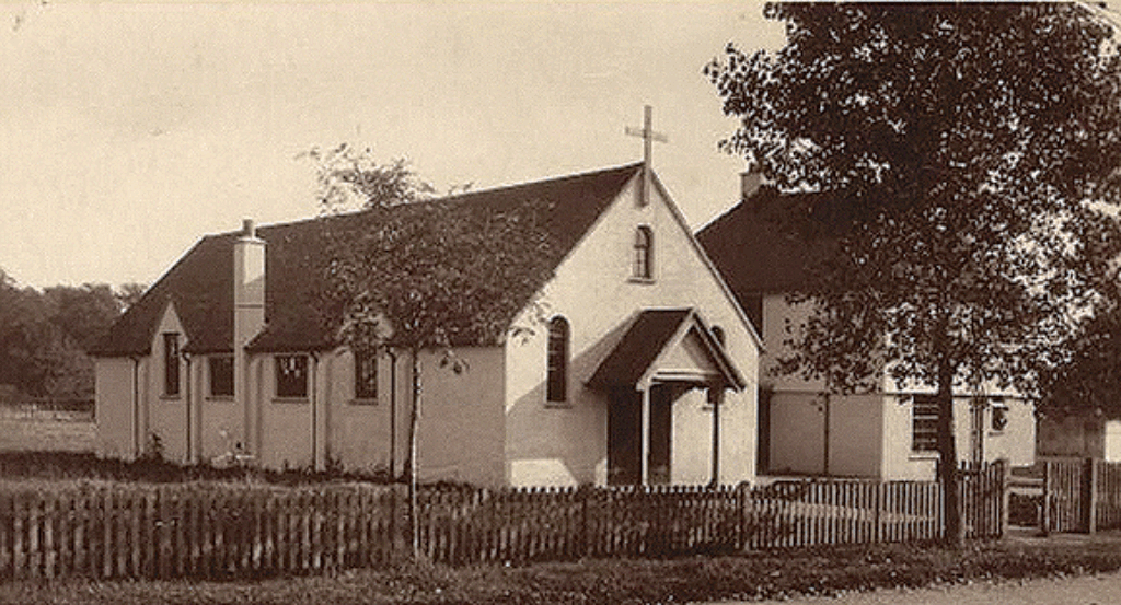 On the right, St Cuthbert Mayne’s school hall (with a cross on top) was in 1933 the first purpose-built Catholic church in Cranleigh. The present large church was built in the 1960s on former allotments, largely through the dynamism of Father Francis von Weyhrother, the priest from the Netherlands, always known as ‘Father Von’.