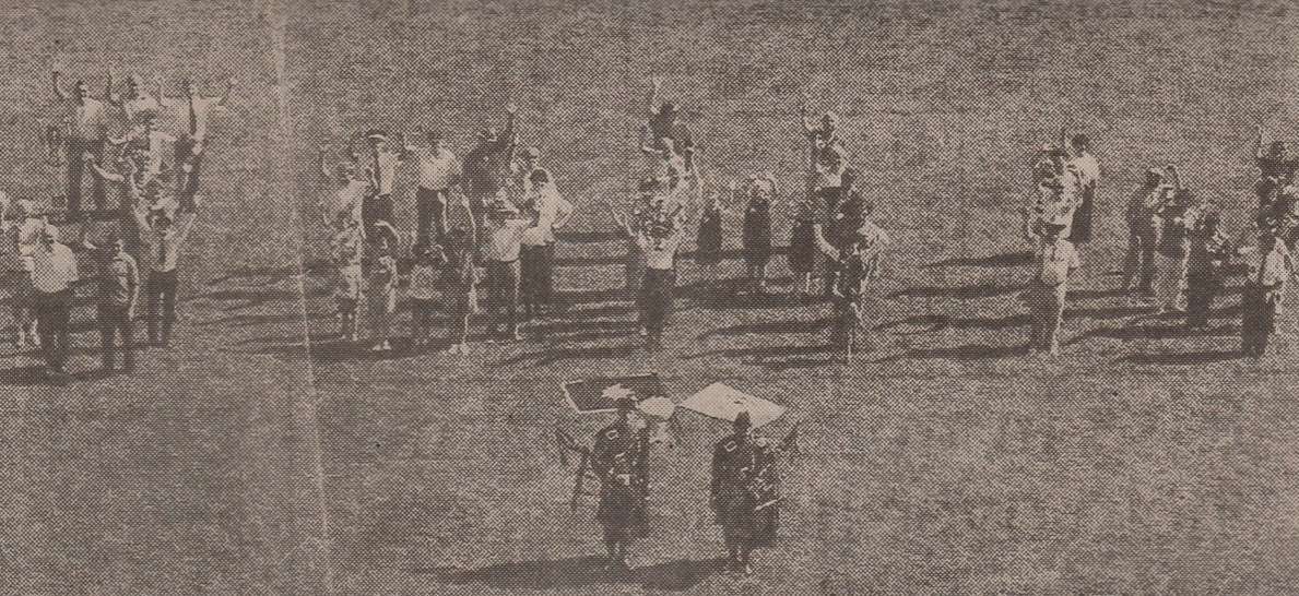 Roy Castle was still the main presenter at that time, together with Cheryl Baker, a singer with the group Bucks Fizz, who had won the Eurovision Song Contest in 1981. She spent the day in Cranleigh, with a BBC crew from Record Breakers filming the event, while Roy Castle was encouraging the Isle of Man team.