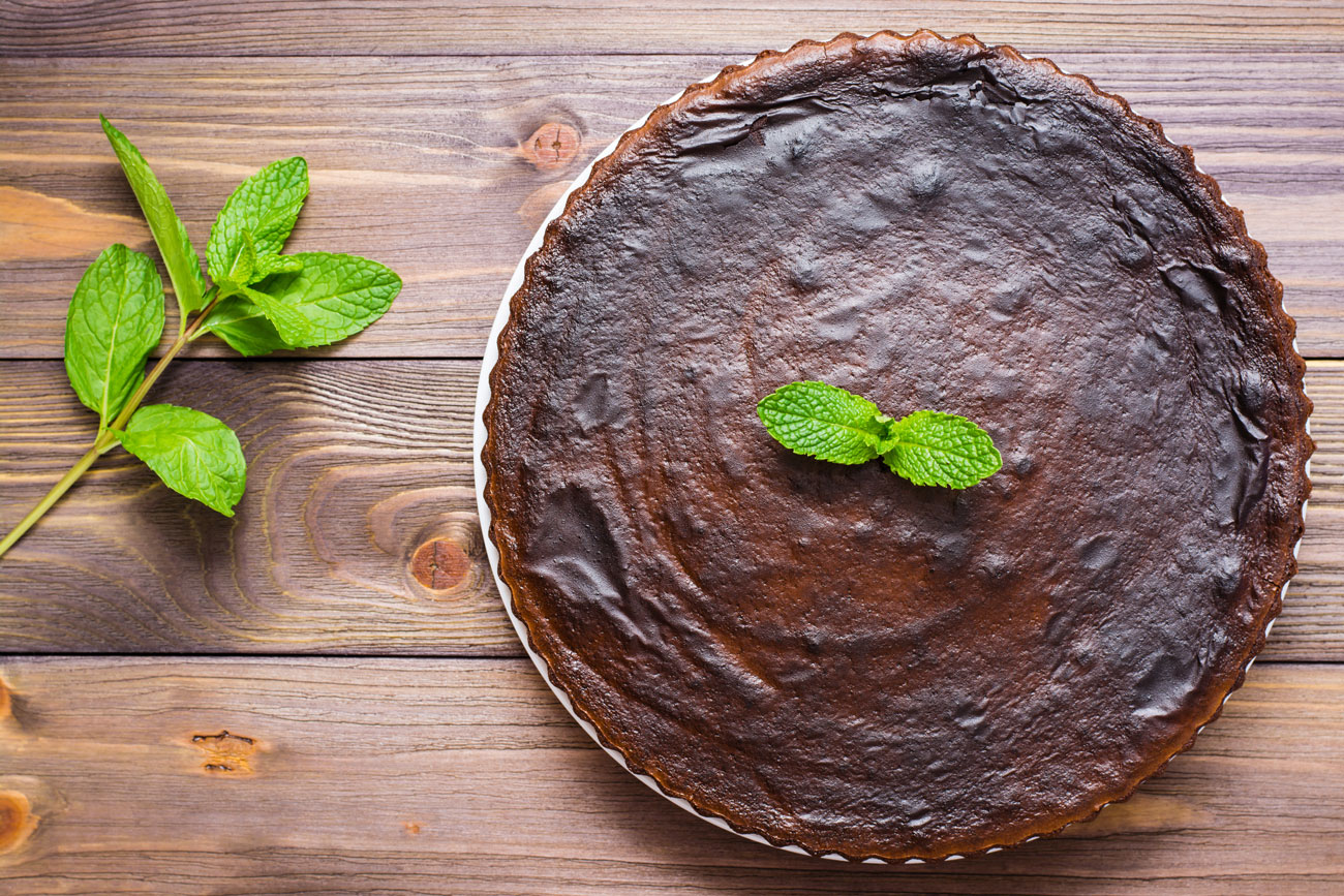 - Scatter the caramel chocolates over the base of the pastry case, then pour over the filling. Transfer the tart to a baking sheet and put in the oven (still set at 190C/170C fan/gas 5) for 20-25 mins, or until set and the top has formed a crust. Leave to cool to room temperature, then carefully remove from the tin and put on a serving plate. Dust with the extra cocoa and sprinkle over a little sea salt, if you like.