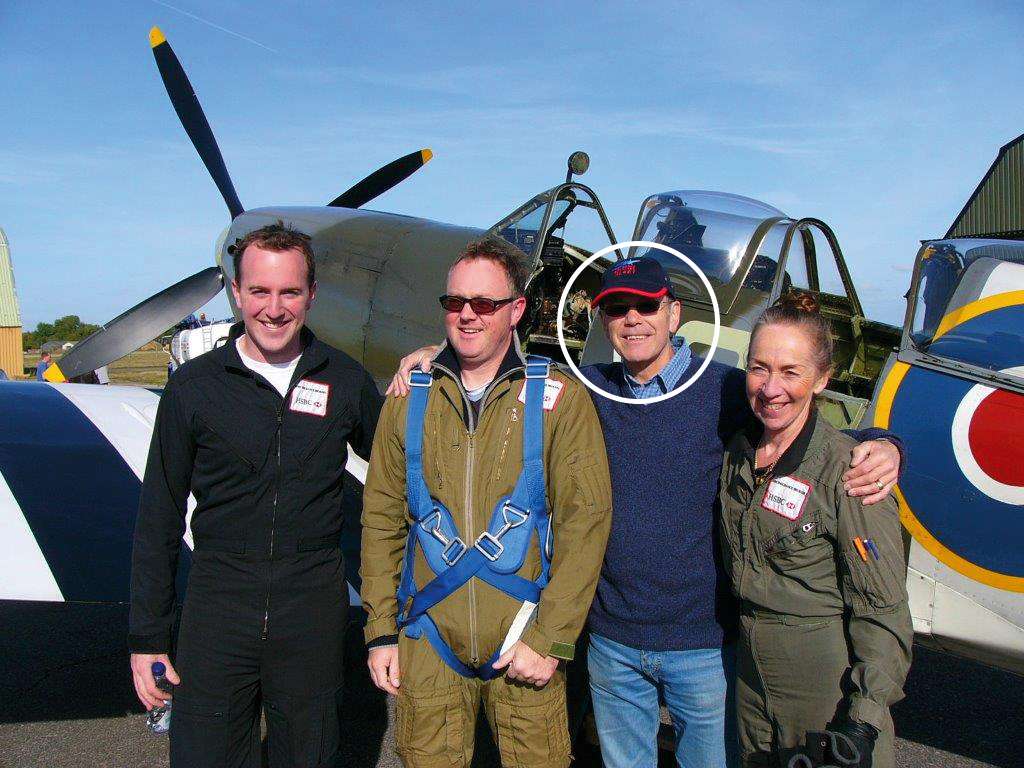 In 2009 I was able to fly in this two-seater and Richard Grace was my pilot! In 2015 I had my second flight this time piloted by Dave Puleston. Dave and Richard are the TRIG aerobatic team pilots and in both my two flights I inevitably enjoyed the exciting experience of loops, rolls, hesitation rolls, half rolls, half Cubans and, just before landing, two victory rolls over the airfield. I “had the stick” for and flew this 70 year old icon of the skies myself. I have an hour on Spits!
