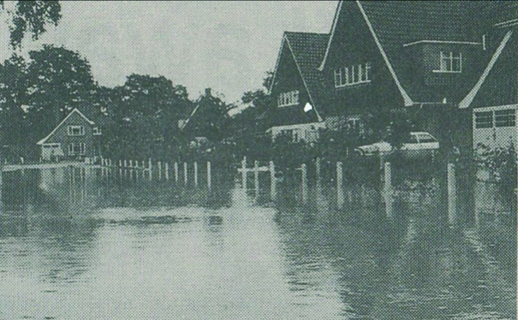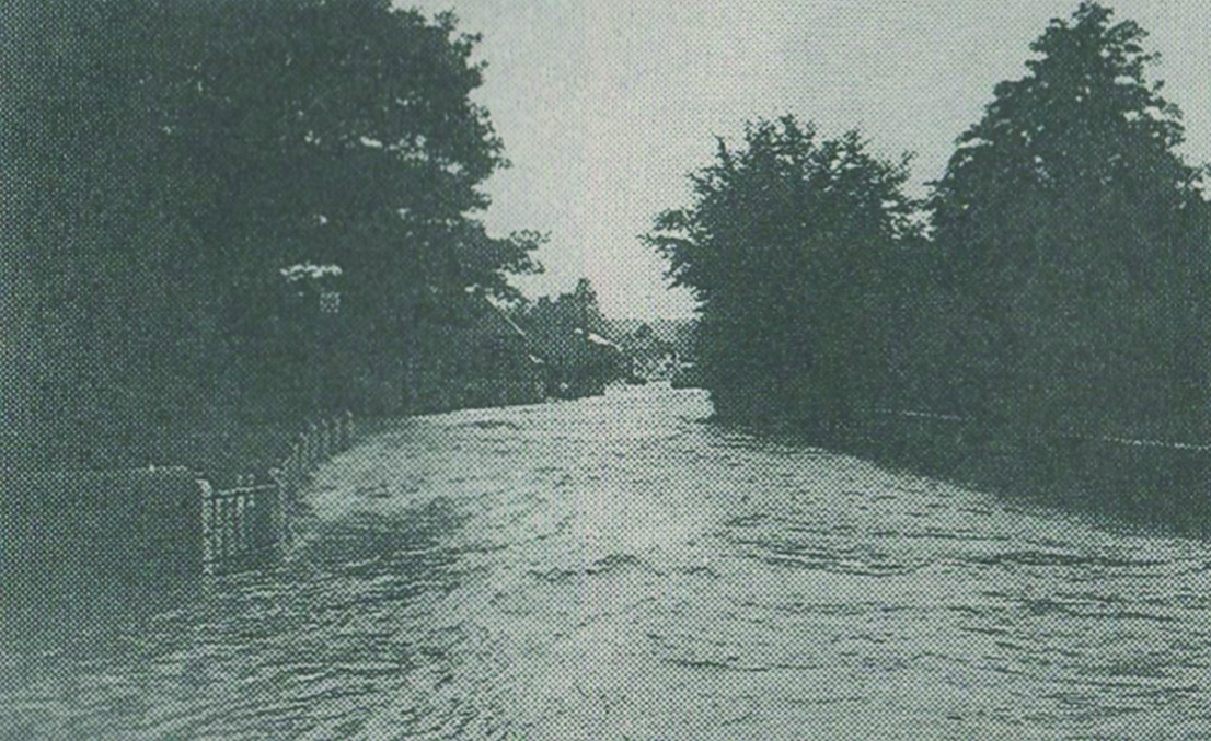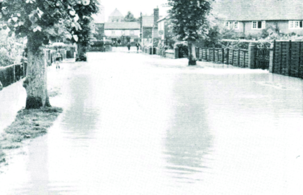 In Cranleigh, the rainwater streamed down from the Surrey Hills, and completely overwhelmed the existing drainage systems. It transformed Ewhurst Road into a river. At the house of Bert Lade (Sussex House), next to his butcher’s shop (now Cranleigh Memorials) six inches of water came in by both the front and back doors. The British Legion (now Legion House) was flooded, as were several nearby shops. The water flowed down Mead Road, and cars were abandoned in Horsham Road. Homes on the new estates of Overford Road, Overford Close and Redcroft Walk were inundated. The floodwater washed through the High Street, flowing down Knowle Lane and even reaching the cricket ground.