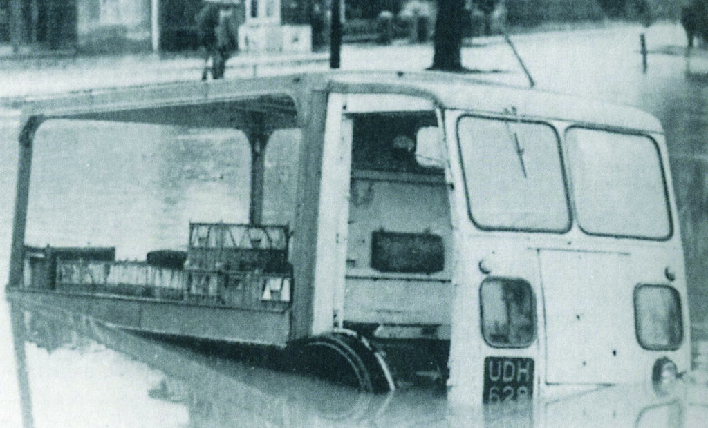 It rose several feet in the cellars of Tyler’s, the high-class grocer’s by the fountain. All the bottles of wine stored here for customers lost their labels, and it took days to match bottles with labels, with the help of records in the ‘cellar book’. A milkman’s electric float in St James’s Place short-circuited and drove itself across the main road and into the pond. The Baptist Church contrived to hold a Sunday morning service, but with only eleven adults (plus children) present, and the organ disabled by an electricity cut. At nearby Swiss Cottage, the water ‘swept in like a tornado’, wrecking much of the furniture and all the food in the larder.