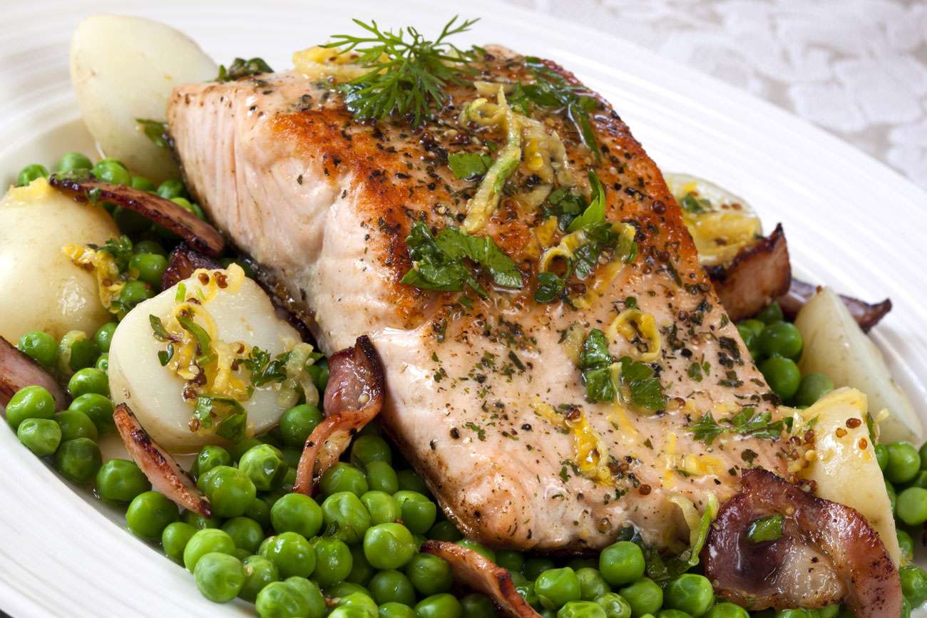 SAUTÉED SALMON & FRESH PEAS – Main Course (Serves 4)