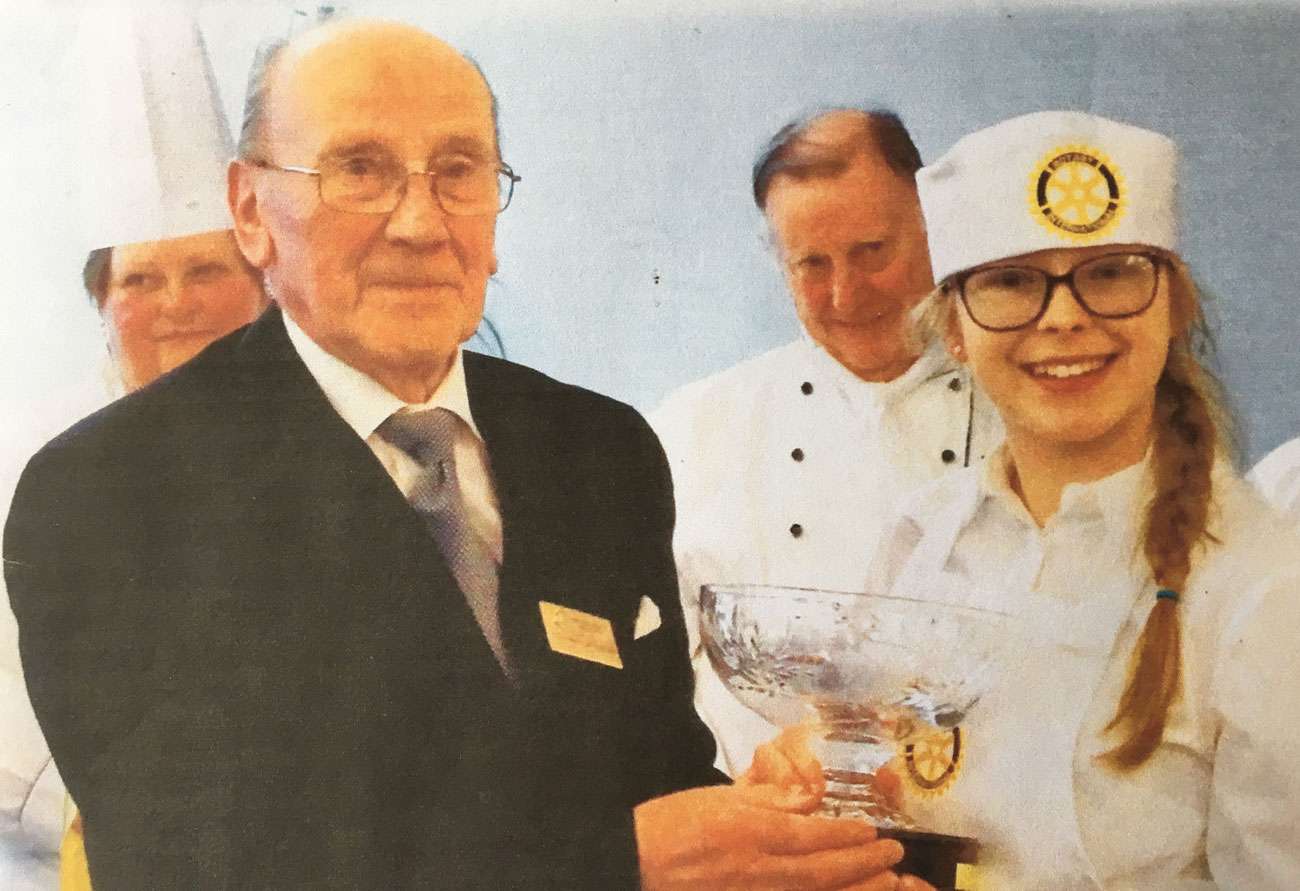 Miranda Watson receiving first prize in the Rotary Young Chef competition from Giovanni Fontebasso, Vice President and Governor of the Craft Guild of Chefs