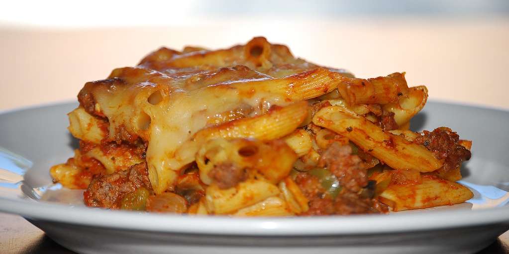 - Heat the oven to 220C/200C fan/gas 7. Cook the penne following pack instructions. Drain and toss with the remaining oil. Tip the pasta into a medium sized ovenproof dish. Stir in the chicken and pour over the sauce. Top with the cheddar, mozzarella and parsley. Bake for 20 mins or until golden brown and bubbling.