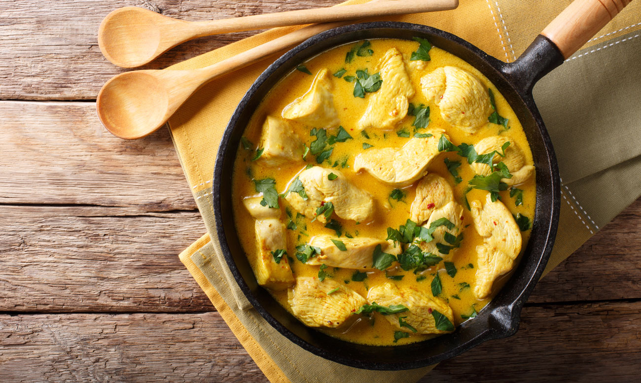 - Stir through the cream and mustard and simmer over a low heat, uncovered, for 5 mins with the chicken skin-side up. Season to taste. Scatter with parsley, if you like, and serve with mashed potatoes and greens.