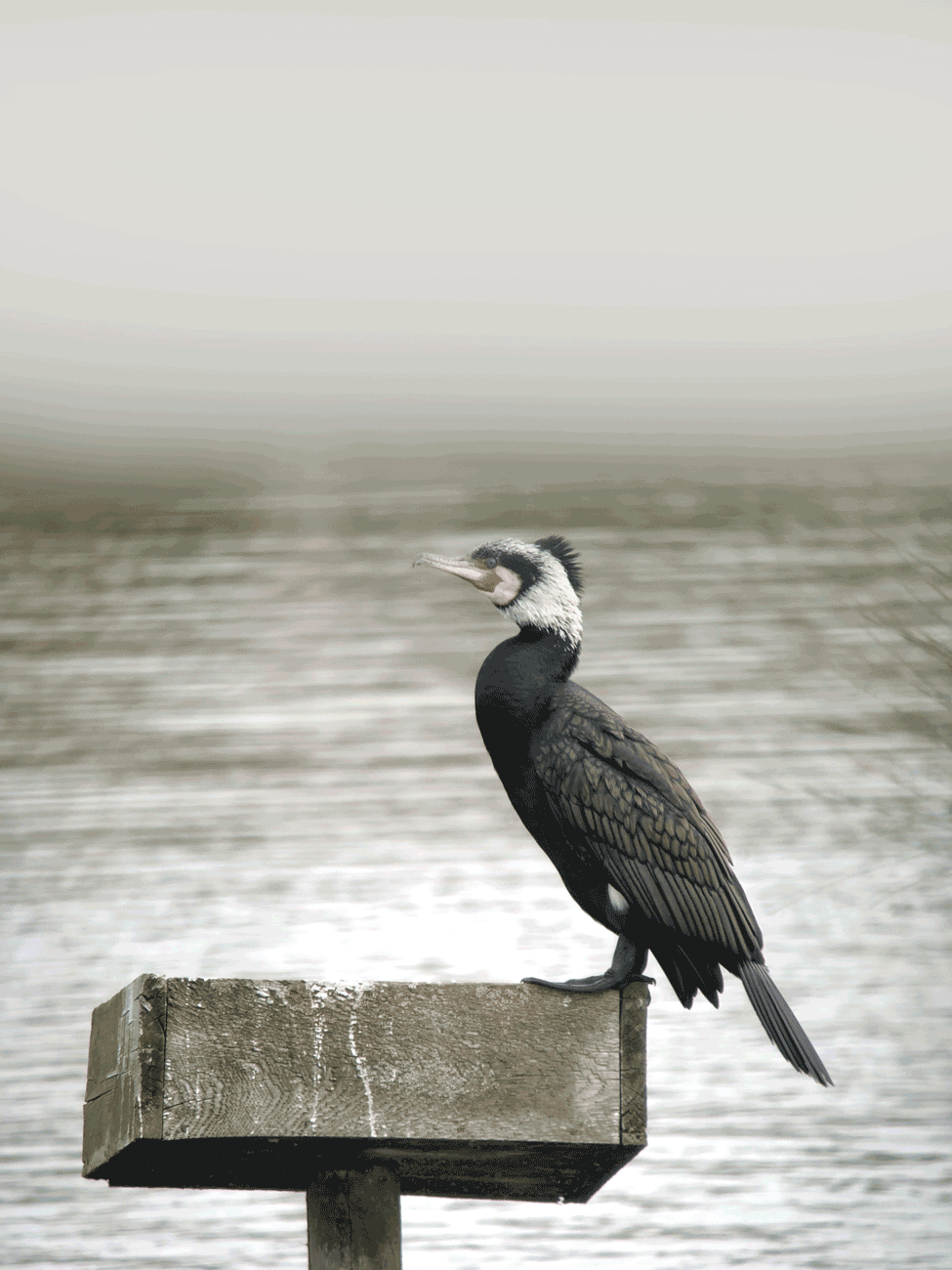 When viewed close up the aerodynamic Cormorant looks primeval. Designed for one purpose, fishing, its Latin name Phalacrocorax carbo stems from Corvus marinus (sea Raven), which points to it being a nasty piece of work.