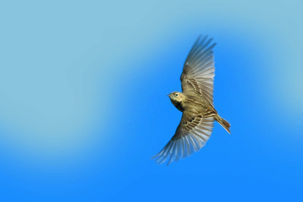 From the top of an isolated tree the male sings a fast series of loud trills at various pitches. The song continues as it rises vertically before descending, seemingly in slow motion, back to its vantage point using its spread tail and wings as air brakes.
