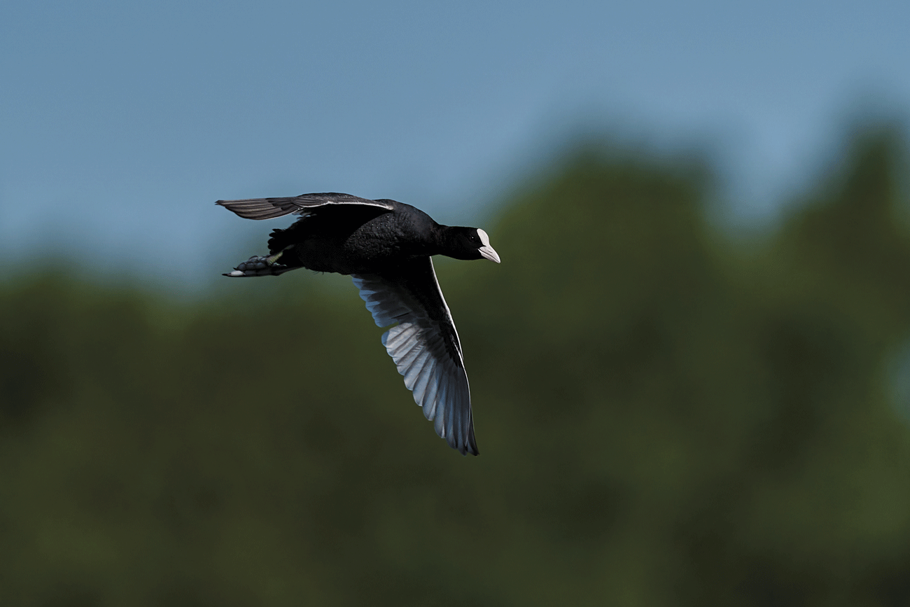 I guess most of us would know the sooty coloured Coot if we saw one. But I imagine few have seen one fly for more than a few yards so probably would not have noticed it has a white trailing edge to the inner wings.