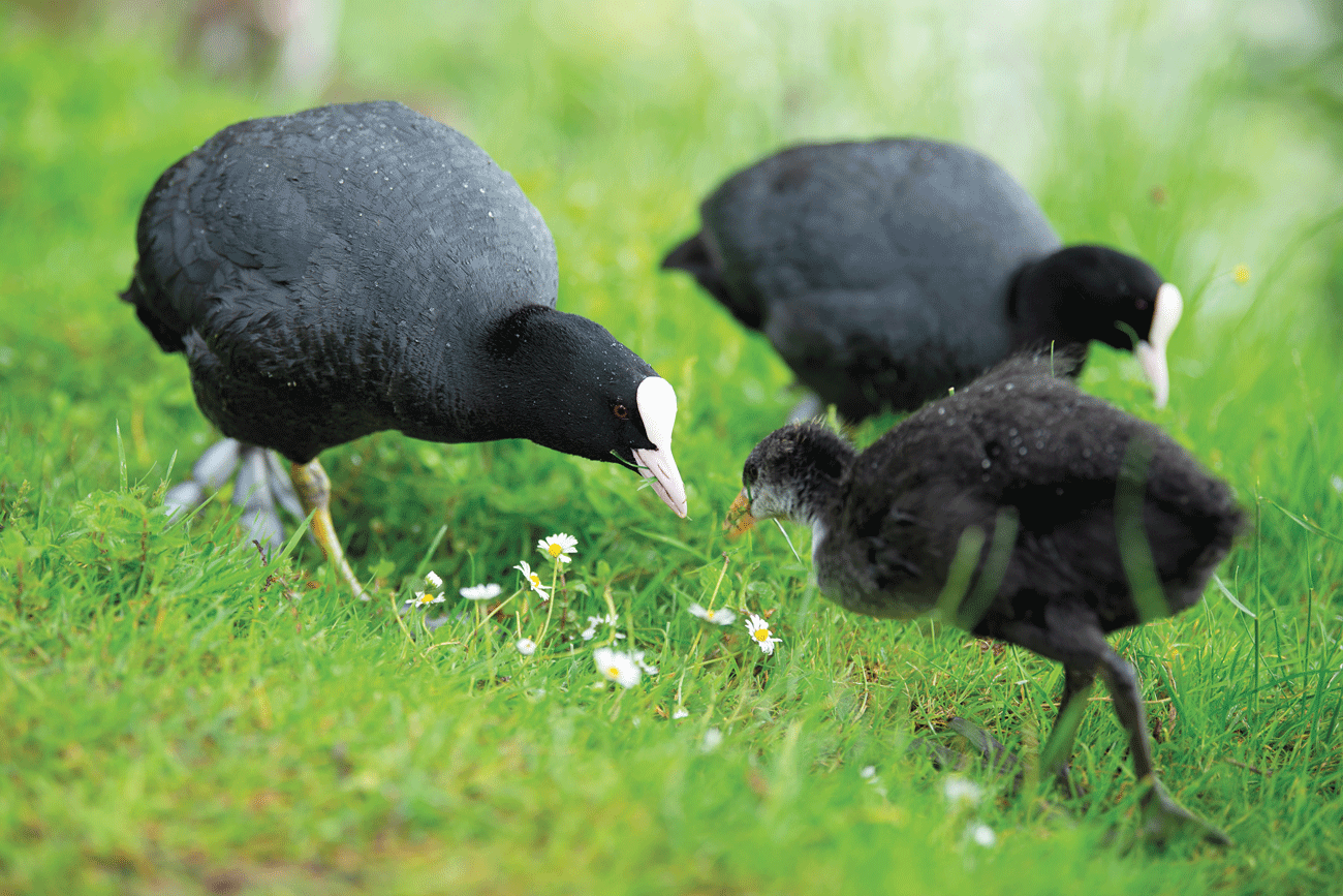 The adult, red-eyed Coot is not bald either. The phrase ‘bald as a Coot’ is another misnomer because this has been taken to refer to the white featherless shield at the front of its head, which does not even stretch to the back where baldness usually begins to show itself in humans.