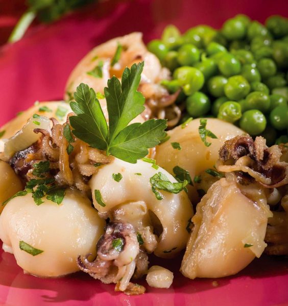 SLOW COOKED CUTTLEFISH WITH GARDEN PEAS – Starter (Serves 4)