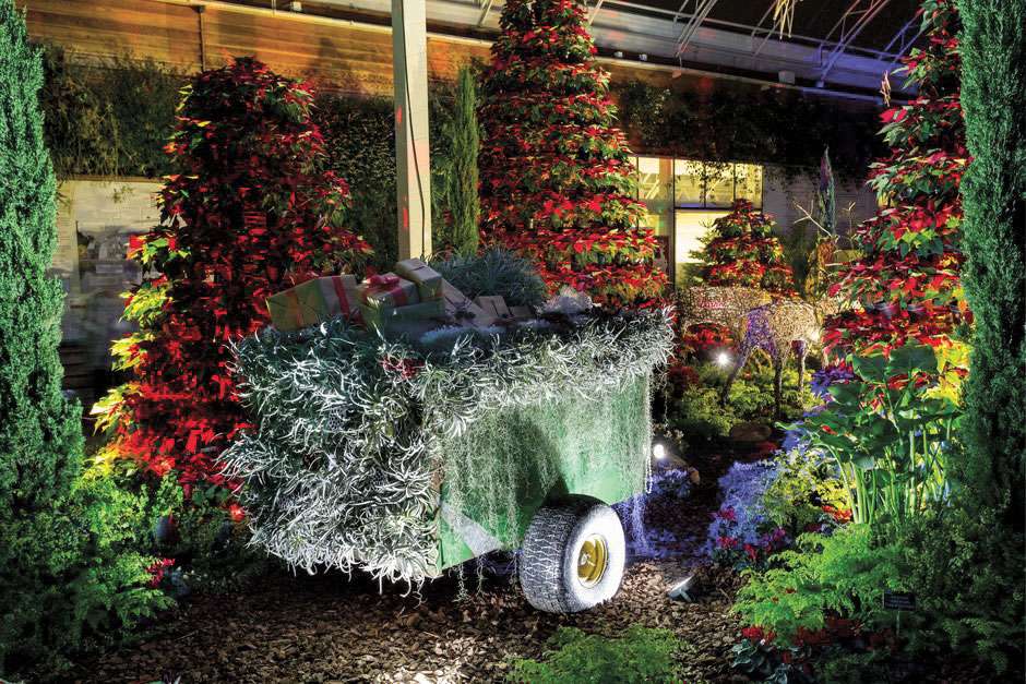 Enter the Glasshouse to view a display of festive plants and magical animals with a hint of steam punk. Watch the enchanted poinsettia production line grow these colourful
