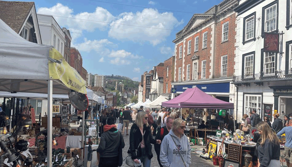 This popular town centre market is held in the main High Street of Guildford with up to 50 stalls to choose from and a huge array of choice whether antiques collectables vintage and retro plus vinyl records.