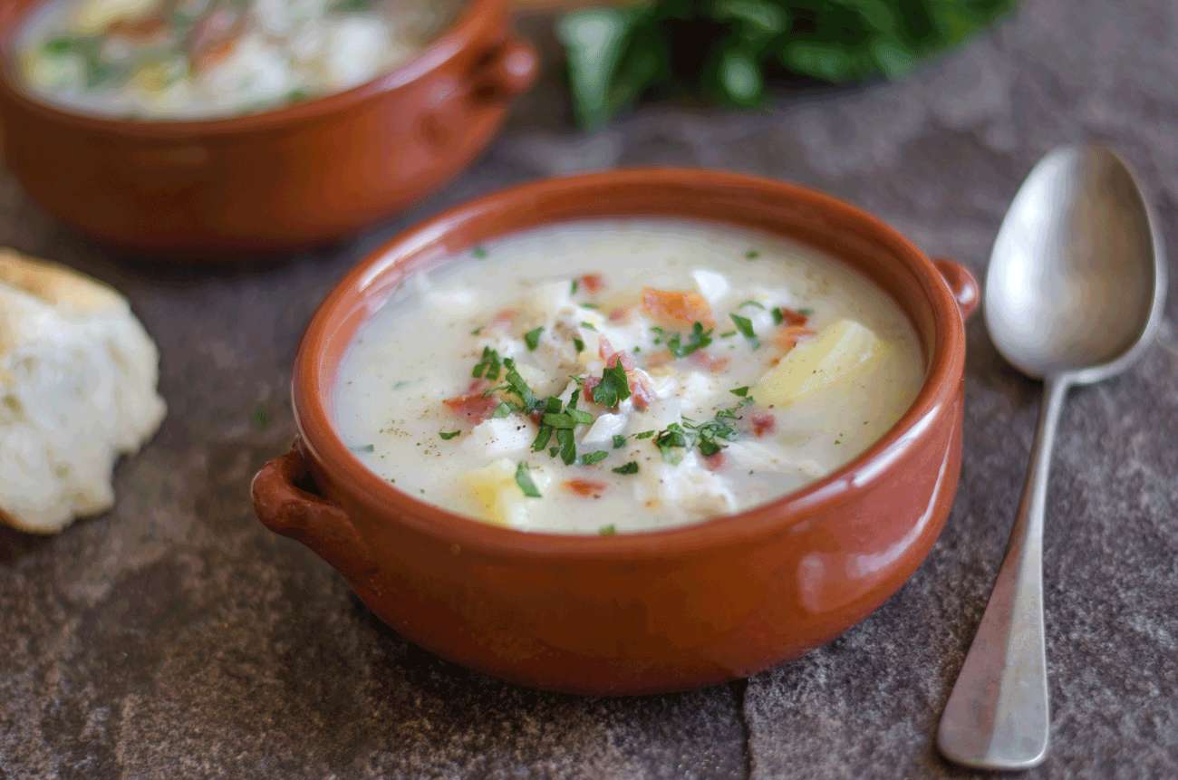 I got this recipe from my days working at Wheelers in Chancery Lane, one of the oldest fish restaurants in London. When I arrived in England back in 1997, I didn’t have any idea what smoked haddock was, so the first time I cooked this recipe I was a bit suspicious of these bright yellow fish fillets. But by trying it just once, I fell in love with it! This delicious white fish really is amazing when smoked. Especially with the chowder, you can enjoy the tasty smoky flavour combined with delicious vegetables and a bit of cream, to add texture and creaminess.