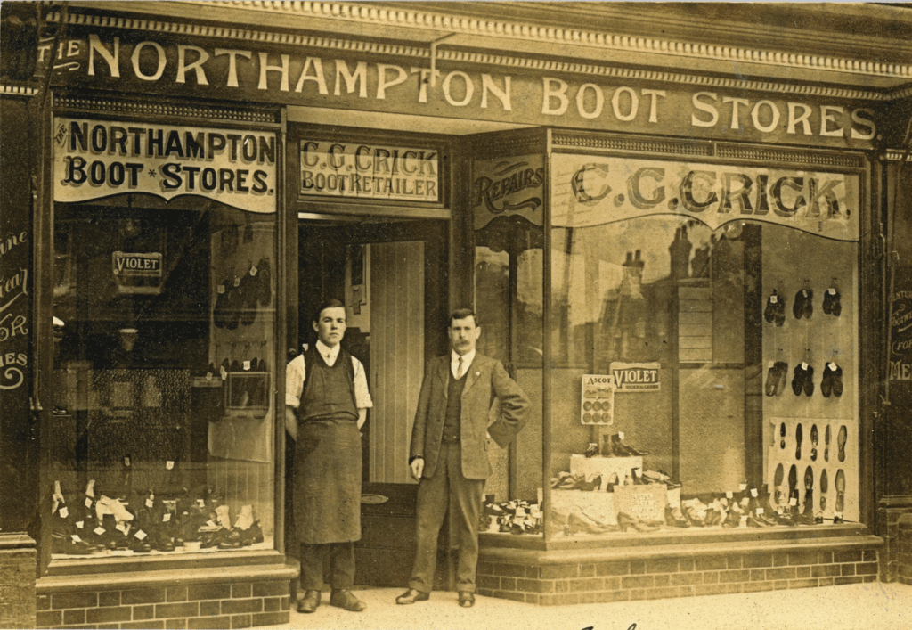 When Charles left school at 13, he worked for three years at Rydinghurst in Elmbridge Road as the ‘house-garden boy’, doing odd jobs. After that he became an apprentice to Charles Crick at the Northampton Boot Stores in the High Street and learned the skill of shoe-repairing.