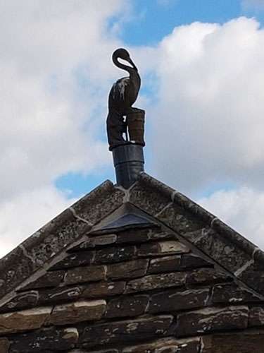 Cranes are similar to herons, but larger and unrelated. Roast crane was a delicacy eaten on special occasions by the nobility. The number of cranes in the country was declining by 1533, when an Act of Parliament forbade taking cranes’ eggs from nests. Soon they had died out entirely in England. In the late 20th century, however, after 400 years’ absence, some Common Cranes reappeared on the Norfolk Broads, and even bred, so that there are now about 72 pairs there. The Wildfowl and Wetlands Trust at Slimbridge started a project in 2009 to rear cranes and release them on the Somerset Wetlands. Maybe someday cranes will find their way back to their old haunts at Cranleigh. Meanwhile, representations of cranes are to be found everywhere here.