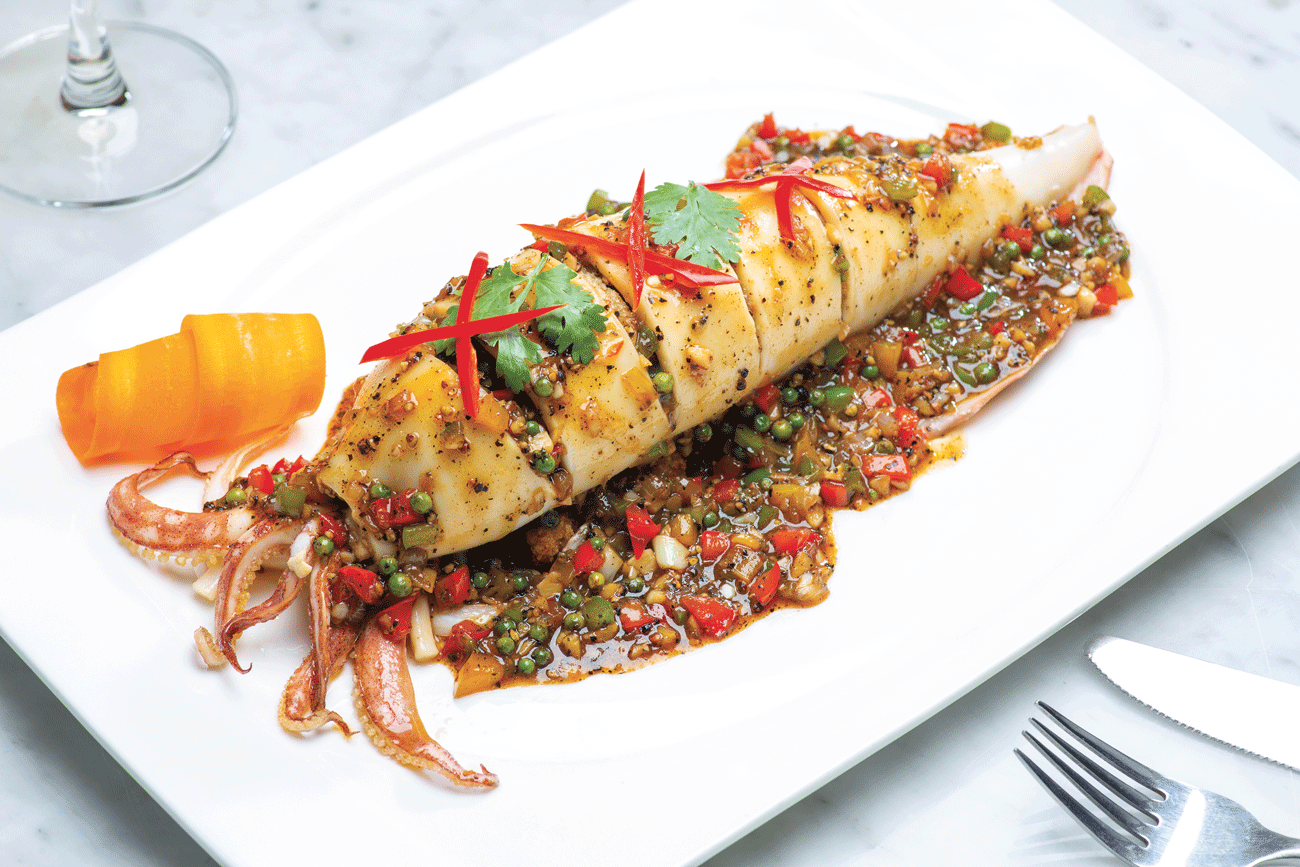 1. First of all clean the squid (if you ask our lovely Cranleigh fishmonger, he’ll be more than happy to do this). Remove the skin, then separate the tentacles from the body. Rinse both the body and tentacles and chop the latter.