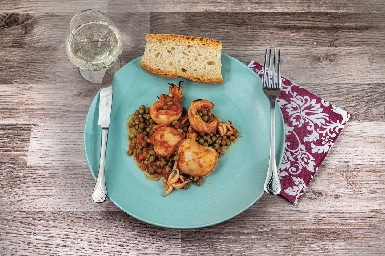 Slow cooked Cuttlefish with Garden Peas – Serves 4