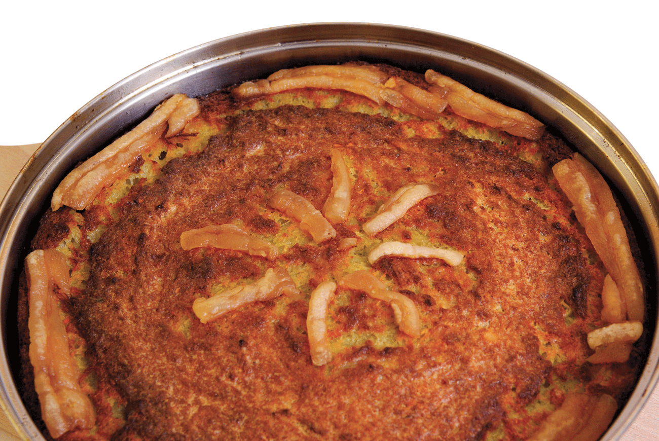 4. Grease the base and sides of a 8” or 10” baking tray with butter and sprinkle gluten-free breadcrumbs around base and sides. Pour mixture into it, making sure the top is nice and even. Place in preheated oven for 1 hour at 180oC or mark 5-6.