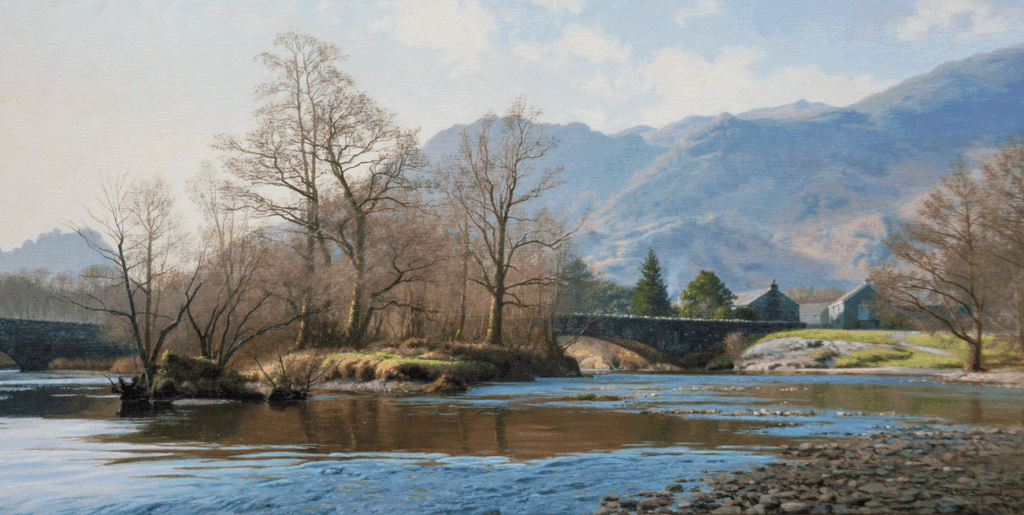 Thankfully, enough galleries took my work and I began to make a reasonable living. I grew to love painting landscapes, particularly the British landscapes, and l came to love the effect of light on the landscape, a natural phenomena that I have spent my lifetime trying to replicate through paint! Whilst I have dabbled with painting portraits and still-life, my real passion is for the landscape. A key component of my work is to see the extraordinary beauty of our natural world and to see the hand of God behind it.