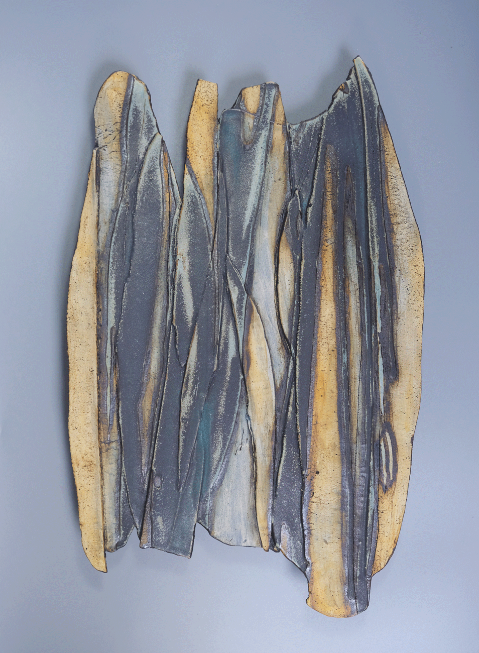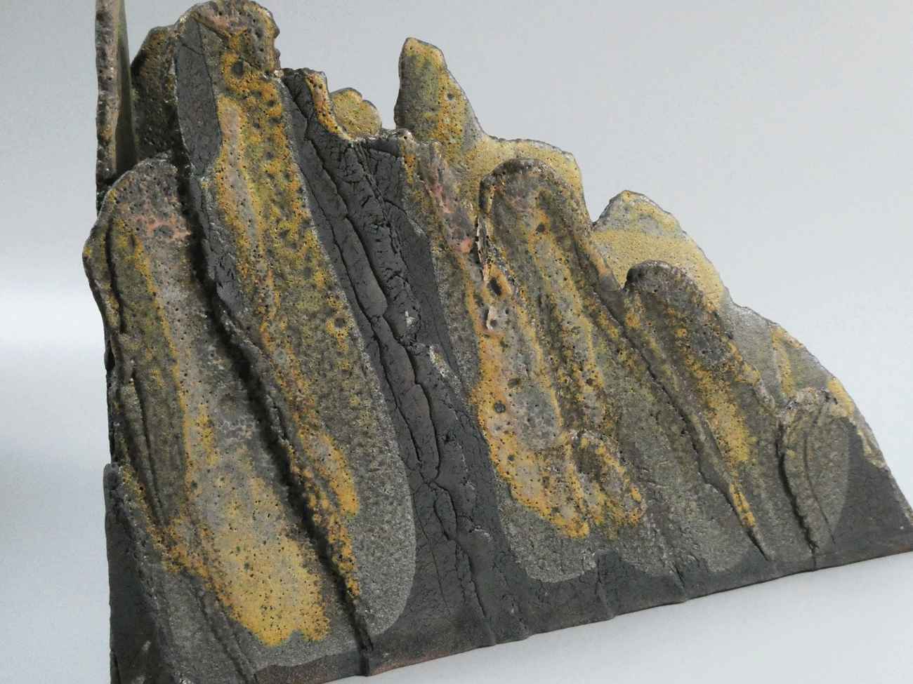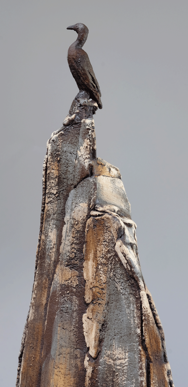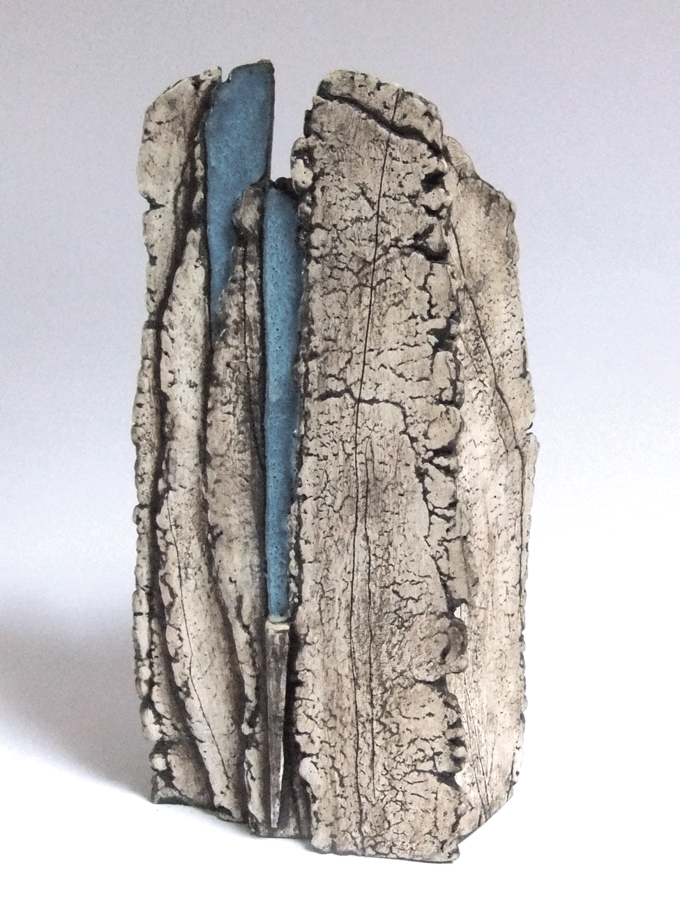 My love of walking in the countryside, especially on the coast, has provided a strong contrast in the way of inspiration – rocks, cliffs, energy, power, space, drama. Out on open moorland and up on the cliffs there is excitement and a feeling of being at one with nature. I find my resultingmore dramatic ceramic pieces complement my birds, partly due to the overall colour palette of my slips and glazes, and I enjoy their contrasting shapes. I am keen to return to painting again, not to replace my 3D work, but to complement it, in the hope that each can inform the other . . .There is always something new to learn . . !