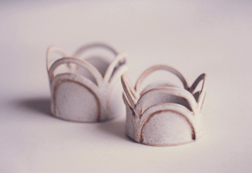 After moving in 1977 to a delightful cottage on the edge of Ashtead Common, I really missed working in clay and after our first child was born, a close friend and I decided to purchase a second hand kiln between us. She recognized my need to get back to pottery and her part of the deal was that I would teach her! This arrangement worked well and was great fun. Thus I began my own small pottery business from the shed in the garden or, when too cold, from the top of the washing machine, (all hands on deck to move everything when it went into ‘spin’!) It was very low key, fitting around family life with two children, but gradually I attended various craft fairs in the area and discovered people liked my work. This included a fair amount of wheel thrown, functional domestic ware to begin with, although I still continued with my preference for hand building, and was making sales and taking commissions.