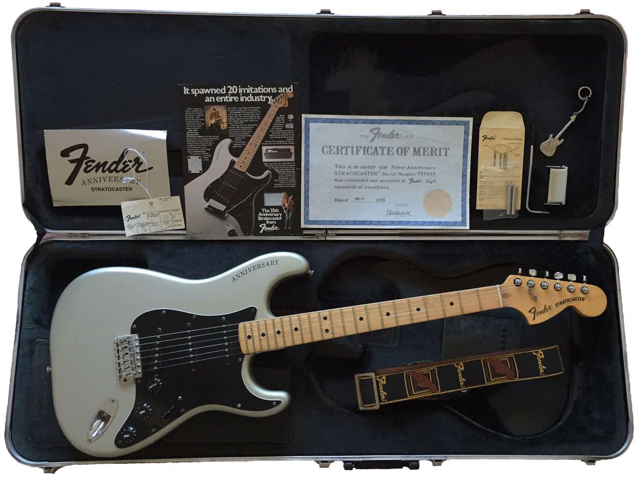 I found a couple of copies of it on the internet. It was a particular anniversary version and only about 2000 of them had been made worldwide, in 1979 to celebrate the 25th anniversary of the Stratocaster. I bought it brand new that year to join the band. I found one or two identical ones on eBay. But thought if I want this guitar back I don’t want a copy, I want the actual one. So I said a little prayer and left it at that.