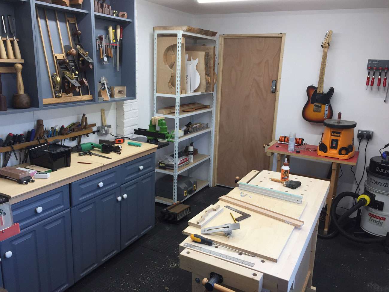 One thing lead to another. I built a few guitars using parts, then ventured to see if I could actually carve a neck using a block of wood by hand and make a fret board. As I started to look into the idea, it lead to building a workshop at home, about a year or so ago. I have organised my workshop complete with some lovely tools, including a few electric ones, though mainly chisels and the like.