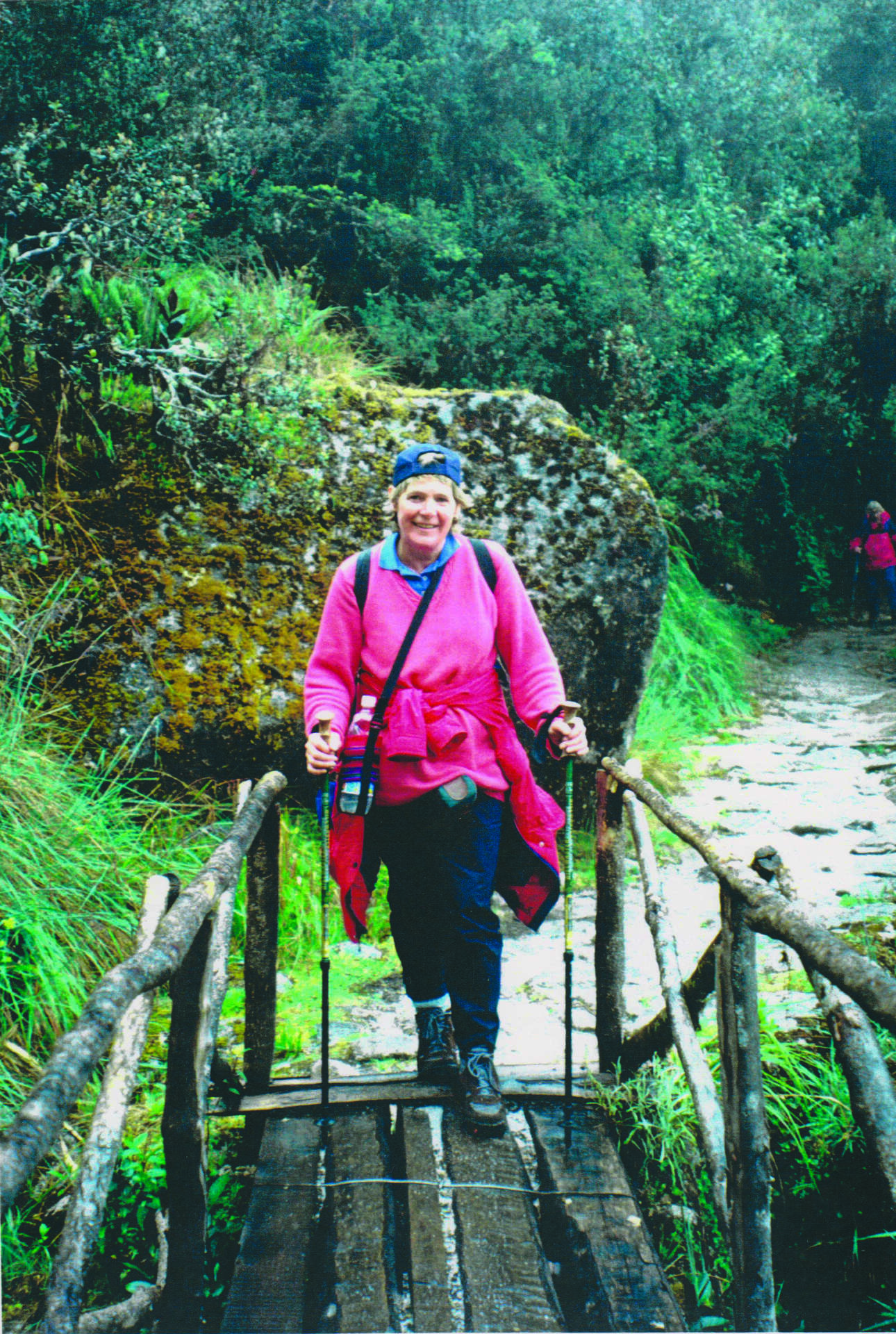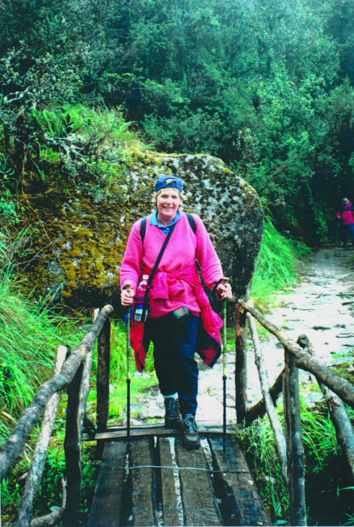 The following years gave opportunities to travel and realise some childhood dreams. It began in 2000 when 12 of us set out to do the 5 day Inca trail, after training for 6 months. We walked along the well-worn, narrow paths with very steep drops down into the jungle. I was at last walking through my beloved Andes and it was far better than I’d imagined. We also went to Cusco, Quito, Lake Titicaca and ended up in Bolivia. I left the others there and flew to Ecuador and on to my next ‘must visit’ – The Galapagos Islands, which were beyond my wildest dreams. The sky and trees were full of birds, the ground full of wildlife and the sea a gorgeous Cerulean blue – total magic! When I visited 10 years later with Mike my 2nd husband, at least 50% of the natural birds, fish and animals had vanished because of the increase in human beings and rats.