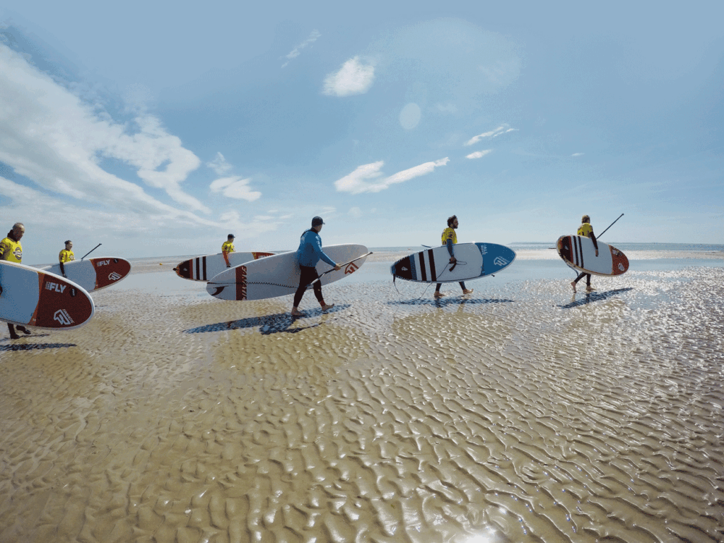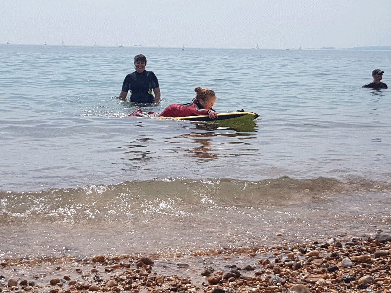 I was out on the water once with my sister, at Hayling Island. It was a really busy day with loads of people on the beach. We were messing about on the water, near a sandbar and decided not to head back to the busy beach but wait until the crowds dispersed. We lay down on the boards enjoying the sunshine. Within minutes the Life Boat came charging towards us, from the other side of the harbour, assuming we were in trouble. I think a member of the public had alerted them. The lifeboat team reached us, all guns blazing only to realise it was a false alarm and we were just sunbathing and relaxing!