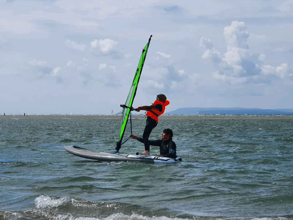 I qualified as an instructor and for a couple of seasons I taught the sport at 2xs at West Wittering. I really enjoyed teaching children, the youngest I remember was only 4, which was very young. As long as a child is happy and confident in water and wears a life jacket, it’s fine. They schedule the lessons when the water is shallow so they were only in knee deep water. The equipment there is all proportionate to their size. The age range of windsurfers is almost limitless, learning from a very young age and I’ve known people still windsurfing in their 80s. Anyone can do it, I once taught someone with only one leg !