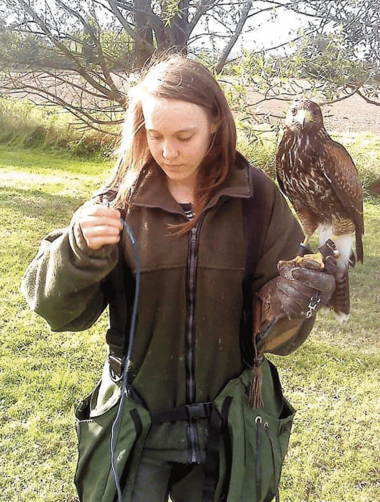 So, it is not just reptiles that I adore, birds are a huge passion of mine too. My love of falconry developed after reading my favourite book, My Side of the Mountain, about a boy who ran away from home to live in the Catskill Mountains accompanied by his peregrine falcon. That story inspired me to wonder what it would be like to experience life alongside my own falcon and so I learned everything I could about falconry through the internet and books. My obsession even led me to take a shoelace to school for practising the falconry knot on the leg of the school desk during lesson times! When I turned 16 my mum located a nearby bird of prey centre in Dorking where I could volunteer, and the owner became my mentor who taught me everything I needed to know about the welfare and handling of these amazing birds. I was completely captivated by the world of falconry and the incredibly unique relationship you could build when you earned the trust of a wild raptor. I rehomed my first bird of prey, Freddie the tawny owl, a few years after this – he was actually a surprise for me organised between my parents and my falconry mentor!