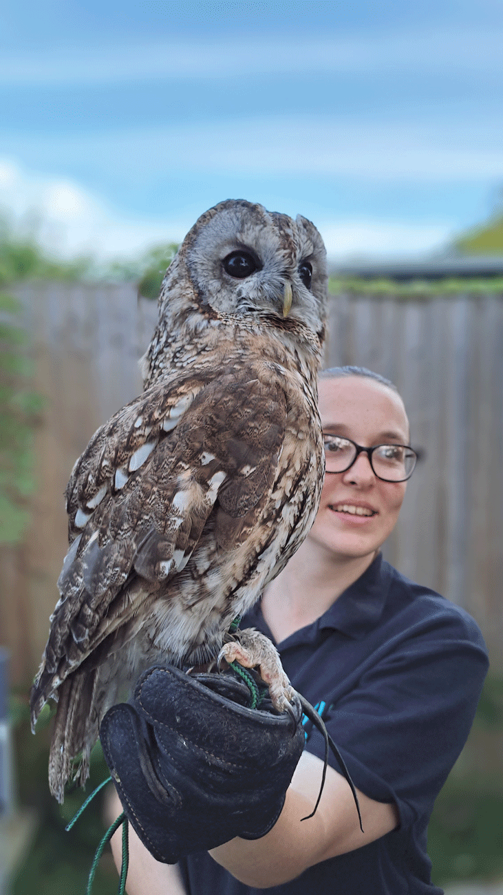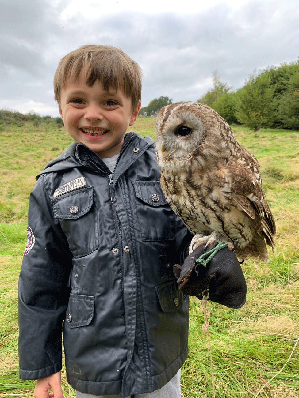 Fast forward a few years, and I met my partner at university, both of us studying animal related degrees. I had a clear vision of a future career working in wildlife conservation, but my circumstances drastically changed when we had our baby boy Sidney which meant temporarily moving in with my grandmother. After a few years my partner, myself and our son moved to Cranleigh to our first family home, but it was proving impossible to find a career with animals that worked around childcare. I was led down a temporary career path in domiciliary care work for four years. I loved caring for my clients, but I found it very emotionally difficult too. One of my highlights was taking Freddie, my tawny owl, out to see a client who was bed bound and had been feeling very low. Seeing his face light up with joy, just by being in the presence of an owl, was truly magical. This formed the spark of an idea about how I could formulate an experience-based business connecting people with the delights of nature and British wildlife.