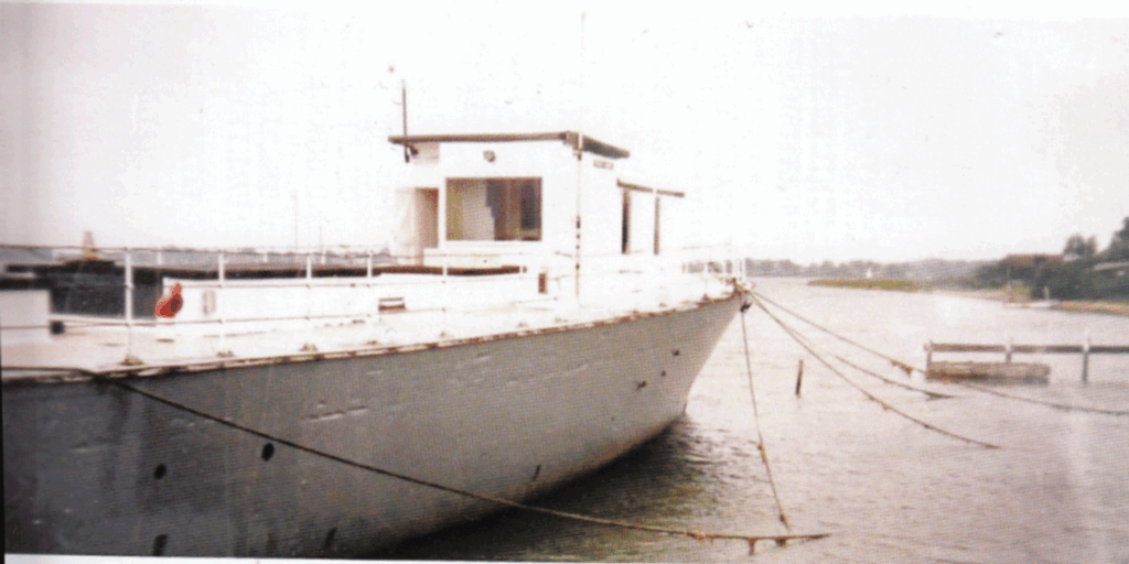 On another occasion the ship broke its moorings and ended up on the bank. This 100 ft minesweeper was just stranded there, on the shore. We had to get it pulled down stream on the high tide before it could be relocated back in its rightful position.