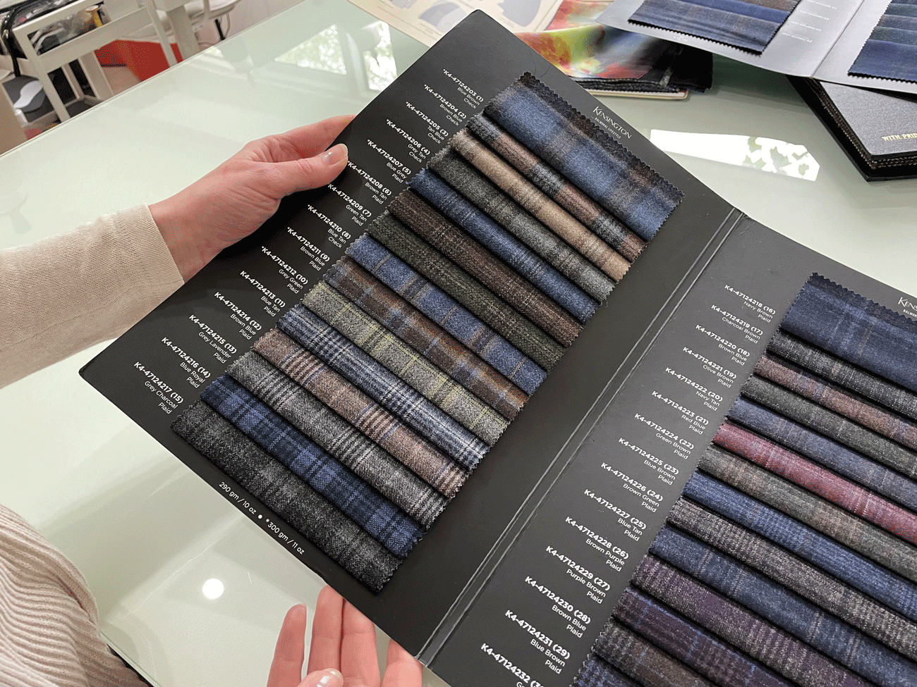 Meeting clients, getting to know them and their needs is something I relish. I’m intuitive and recommend new ideas to clients. I always listen to what they like and notice which fabrics pop out at them or they are drawn to. I love working with people and enjoy seeing them have fun as they choose linings, pipings and other special little details such as a Milanese button hole. Often people don’t realise how much choice there is! It’s one reason to have a consultation with options and quotes given, and then another booking for measuring and finalising materials and style details, before placing an order.