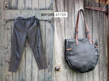 The process of turning a large sofa cushion to a bag from start to finish. (From Left to Right)