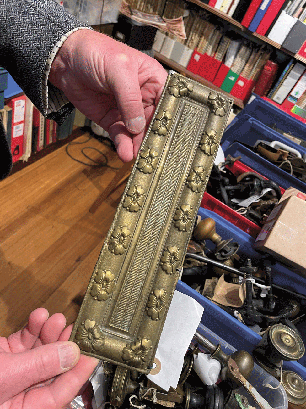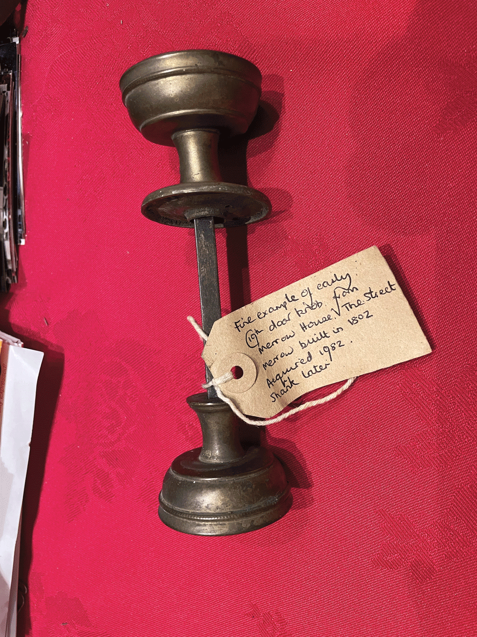 Although the majority of my time is now spent refining and cataloguing the collection, both at Cranleigh and Whitchurch, I am still endeavouring to fill gaps in the various collections and am continuing to visit buildings of importance. This summer I purchased an extremely rare iron and brass c. 1740s-50s ‘Doctor’s Pattern’ door-knocker at the Decorative Home & Antiques Fair held at the Loseley Estate near Guildford.