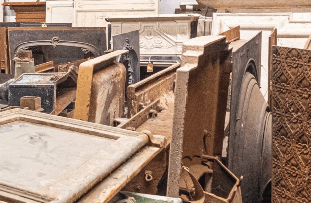 We paid a second visit a few years later to Drew’s separate store, where he kindly donated 18th century panelled doors from historic Compton Verney house in Warwickshire. I also exchanged a religious stained glass window for a superb cast-iron staircase newel-post with a carved mahogany handrail.