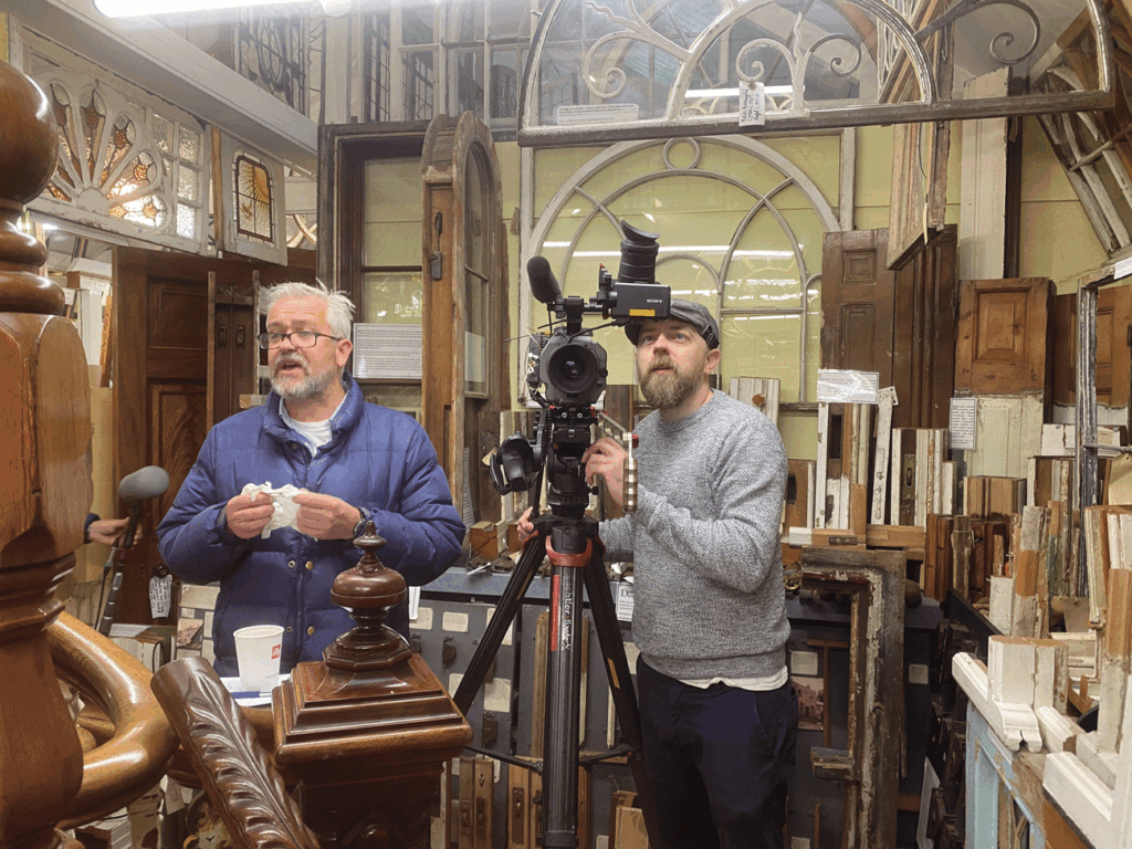 A few weeks ago, in October, we had Drew Pritchard here from the ‘Salvage Hunters’ series on Quest T.V. with his team from Curve Media filming me and the teaching gallery all day as part of a new series on the restoration of his new magnificent Georgian townhouse in St. James’s Square, Bath.