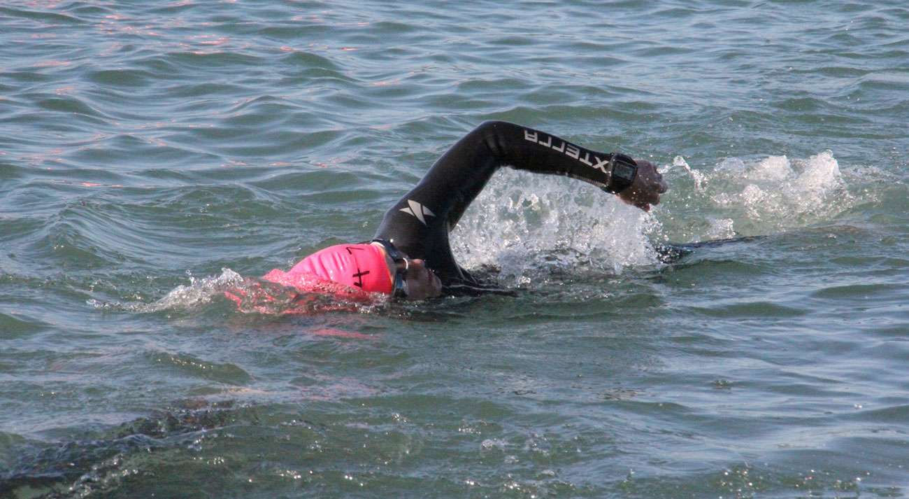 The Iron Man swim is an open-water swim. The first time I ever did an open-water swim was at Dorney Lake in Eton, the ‘super sprints’ and I had a nightmare, a bit of a panic attack half way round and didn’t enjoy it. The British Triathlon offer open-water swim training to members. They have a group of coaches who had just finished their course and needed guinea pigs for their assessment. I said yes and got coached by two guys from Haywards Heath who were lovely. They got me doing nice simple drills which improved my confidence in the water and from then on, it went well. I also went to Thorpe Park lake and trained with some friends which was lovely. I went from being nervous about open-water to loving it. The day before an event in Austria I was swimming in the lake, and if someone had said to me to forget the race and just swim for a few more hours, I’d have quite happily continued swimming, I was simply loving it.