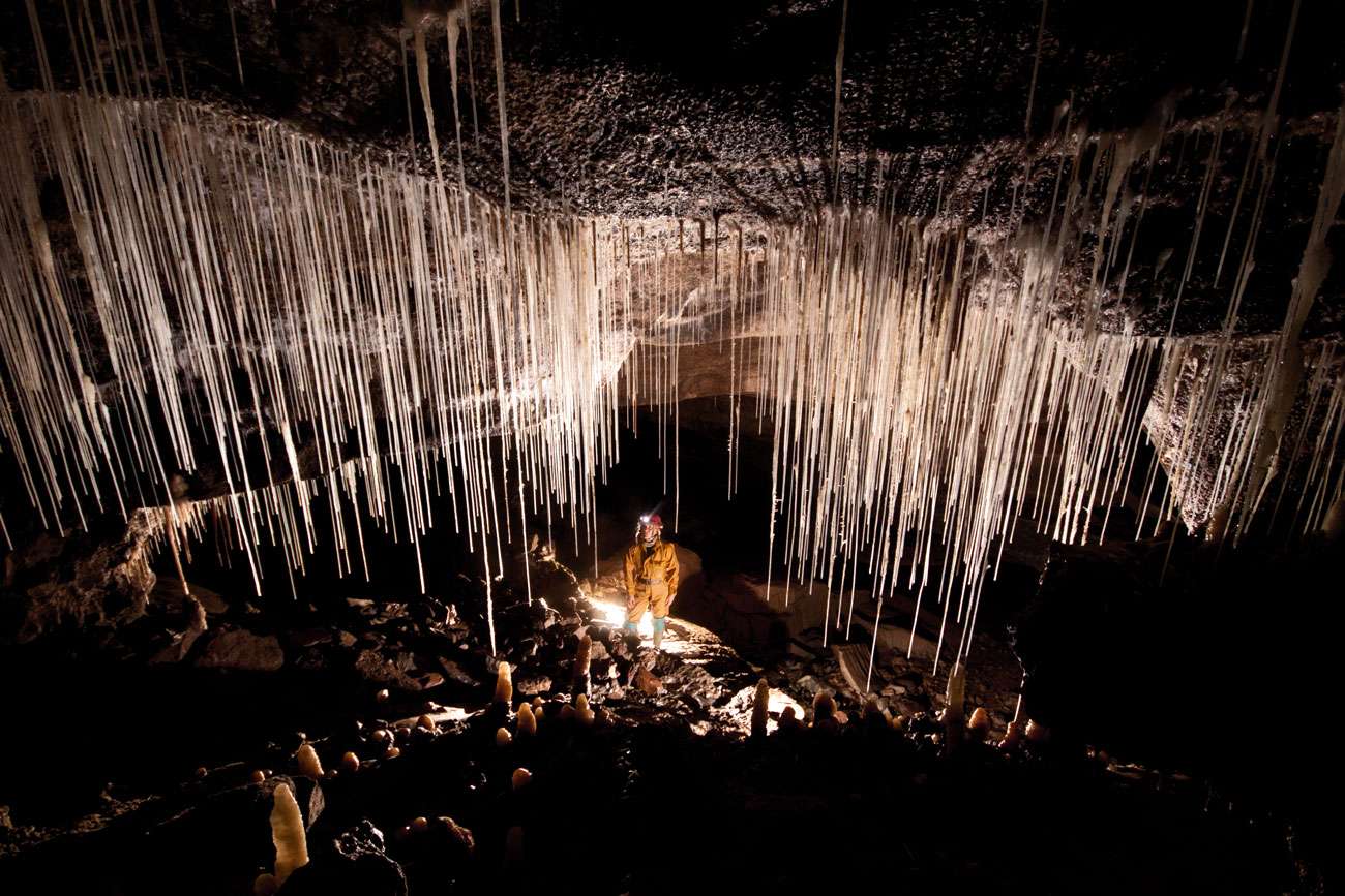 Surrounded by stalactites and stalagmites, caving in Dan-yr-Ogof, South Wales © Tony Baker