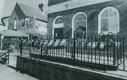 Less than two months before the outbreak of the Second World War, on 10 July 1939, a new bank opened on the north side of the High Street in a smart, purpose-built home. It was built of small bricks in an old-fashioned style of bricklaying. Its site, previously the home of two generations of shoemakers called Randall, had been bought by Barclay’s Bank the previous year for £1,000. One curious condition of the purchase, enshrined in the deeds, was that this ‘parcel of land’ was not to be used ‘for the trades or businesses of a Baker and/or Confectioner’. From the evidence of the early photo, the building seems to have been fairly small, consisting only of what was later the front part. The branch bank cost £1, 953 to build.