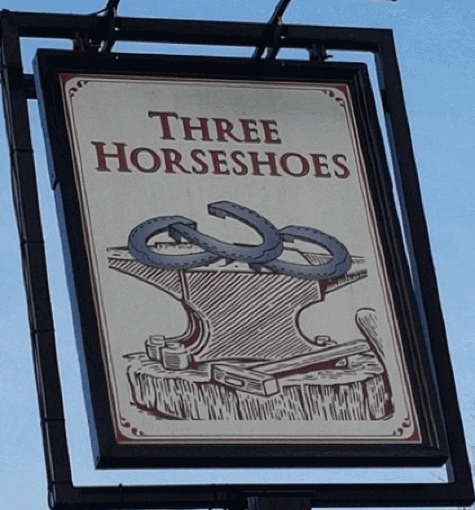 The name of ‘The Three Horseshoes’ came from a forge that was nearby 1841-61, with George Steer