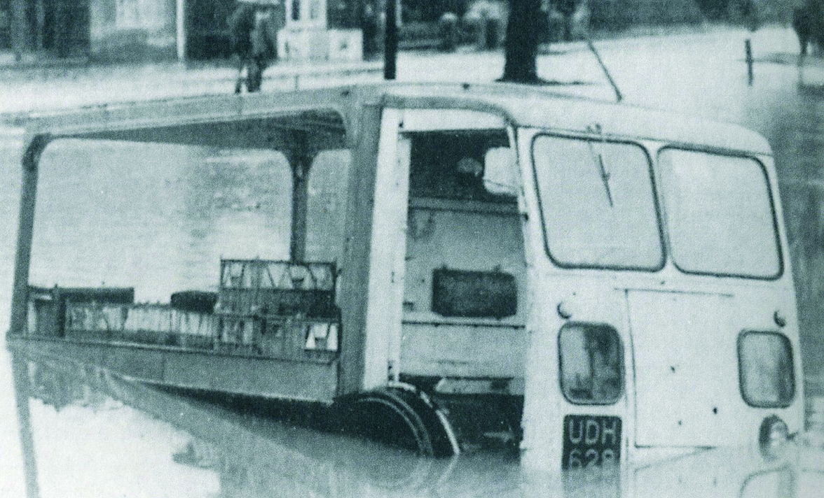 It rose several feet in the cellars of Tyler’s, the high-class grocer’s by the fountain. All the bottles of wine stored here for customers lost their labels, and it took days to match bottles with labels, with the help of records in the ‘cellar book’. A milkman’s electric float in St James’s Place short-circuited and drove itself across the main road and into the pond. The Baptist Church contrived to hold a Sunday morning service, but with only eleven adults (plus children) present, and the organ disabled by an electricity cut. At nearby Swiss Cottage, the water ‘swept in like a tornado’, wrecking much of the furniture and all the food in the larder.