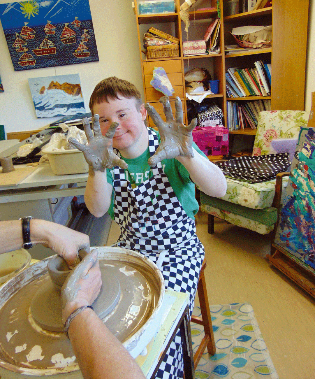 In a small group of maximum 10, participants have the chance to explore the visual arts and enjoy social interactions with their peers, tutors and volunteers. We offer many art forms from drawing and painting to printmaking, textile, photography, pottery and much more. Participants work alongside practising artists and volunteers in small groups or one-to-one. They can work at their own pace in calm, safe, social surroundings, taking pride in what they do and growing in confidence and self-respect.