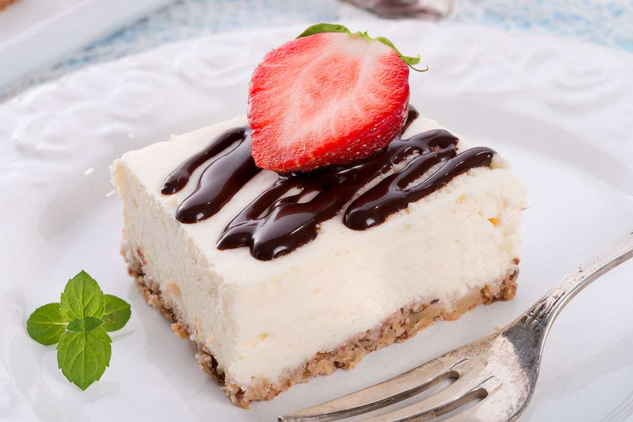 Make a simple, creamy dessert for a dinner party with very little effort. Pairing this white chocolate cheesecake with fresh fruit offsets the richness.
