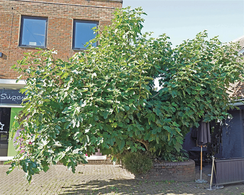 The fig, Ficus carica, has flourished this year. Perhaps this is due to the longer growing season we are experiencing. I have had a sulking twiglet of a fig at the end of the garden for some years – and it always looked reluctant and pathetic. Suddenly this year it has trebled in height and has not only produced an abundance of leaves, but actually two fruits – which we shared, and they were delicious. I have high hopes that this flourishing will continue. The fig outside the Rania restaurant on the High Street in Cranleigh has also benefitted from conditions this summer and it is enormous. I understand that it was planted by the previous Greek owner, perhaps to remind him of home. He also planted a grapevine to ramble through the fig.